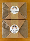 This compostable box contains 2 x 500g Blocks of pure ceremonial cacao beautifully wrapped in food safe paper, ready to shave, cut or crumble for your favourite drink, mixed with water, milk or sweetener as you choose.